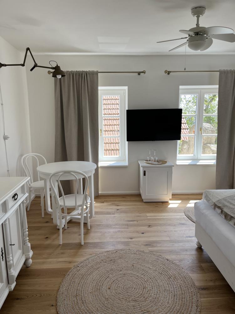 Apartmán 06 v soukromí. Apartmán se nachází mimo veškeré pokoje na vedlejší ulici, ale je součástí areálu.
