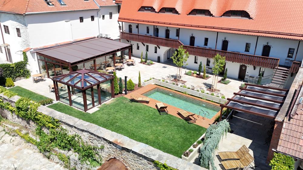 • Wir empfehlen eine frühzeitige Reservierung des Parkplatzes (200 CZK / Auto / Nacht) sowie des Termins für die private Sauna mit Whirlpool (1× 60 Minuten) aufgrund der begrenzten Kapazität.